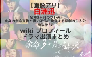 J_Entertainment【画像アリ】白洲迅 『余命3ヶ月のサレ夫』高坂葵 役 wiki プロフィール ドラマ出演まとめ 俳優の桜井日奈子さんがヒロインを務めるテレビ朝日系金曜ナイトドラマ「余命3ヶ月のサレ夫」(金曜午後11時15分)。自身の余命宣告と妻(桜井日奈子、29)の不倫が発覚する悲劇の主人公・高坂葵役を白洲迅さんが演じる。白洲迅さんのプロフィールは?... 2026.04.22J_Entertainment