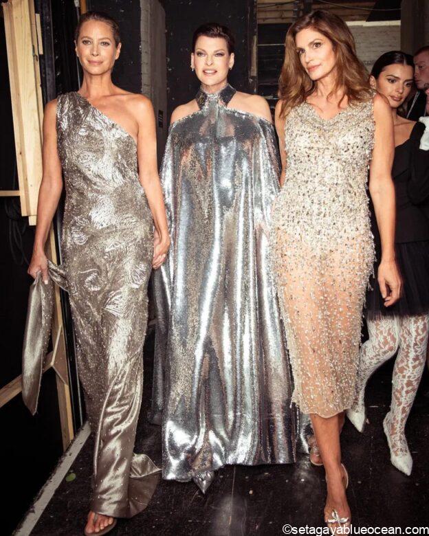 These supermodels reunited: Naomi Campbell, Cindy Crawford, Christy Turlington, and Linda Evangelista, who closed the show at the Vogue World event in London on September 14, 2023. They appeared on stage holding hands and staring straight ahead with the same regal demeanor they had back then. This time, the girls are not dressed in jeans as in the “family” photo by Peter Lindberg, the German photographer who first discovered them; their natural smiles, captured by a photographer who died in 2019, are of course on everyone’s mind. But tonight the four of them were literally glowing.