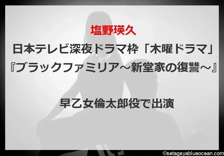 塩野 瑛久は、実業家早乙女ホールディングスの代表取締役社長 早乙女秋生の息子早乙女倫太郎を演じる。
