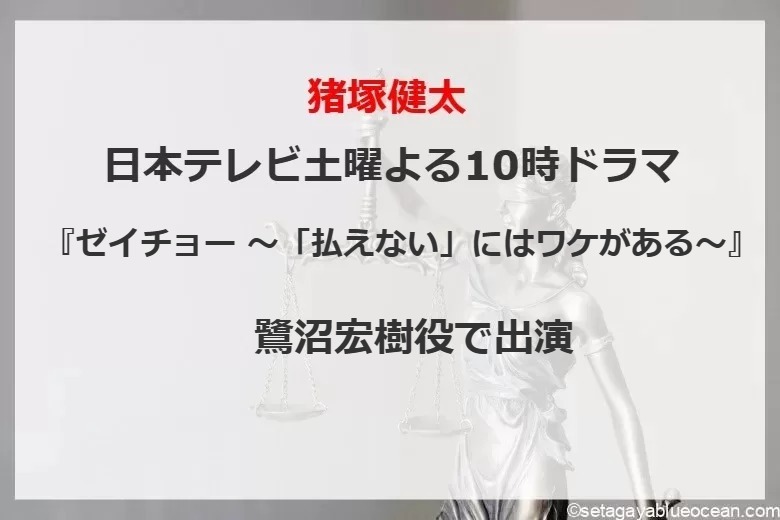 猪塚健太、みゆきの市役所徴税第三係の最年長、納税課に勤めるベテランで人当たりも良く、後輩の面倒見もいい、鷺沼宏樹を演じる。