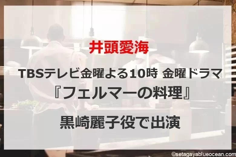 井頭愛海、海がオーナーシェフを務める都内の二つ星レストラン「K」給仕黒崎麗子を演じる。