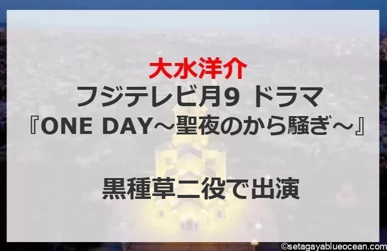 <二宮和也、 中谷美紀、 大沢たかお>トリプル主演の月9ドラマ『ONE DAY~聖夜のから騒ぎ~』を放送されます。