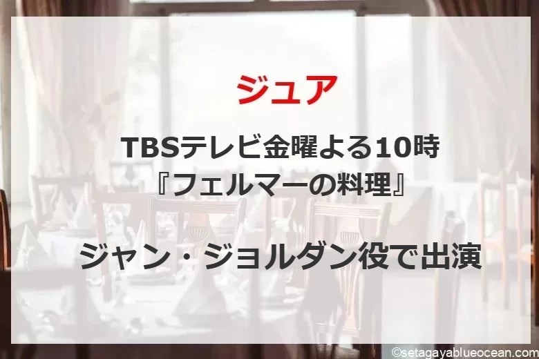 ジュア、海がオーナーシェフを務める都内の二つ星レストラン「K」シェフ。デセール(デザート)担当。フランス出身。ジャン・ジョルダンを演じる。