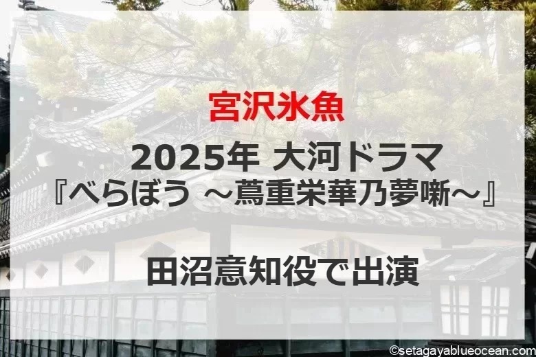 - 大河ドラマ べらぼう〜蔦重栄華乃夢噺〜(2025年放送予定、NHK) – 田沼意知 役