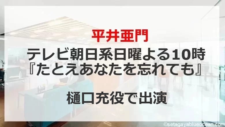- たとえあなたを忘れても(2023年10月22日〈予定〉 – 、朝日放送テレビ・テレビ朝日) – 樋口充 役