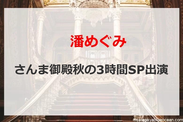 さんま御殿秋の3時間SPは、3つのコーナーに分かれ、「豪華有名人!大失敗があったから今があるSP」で声優・潘めぐみはエピソードを披露!