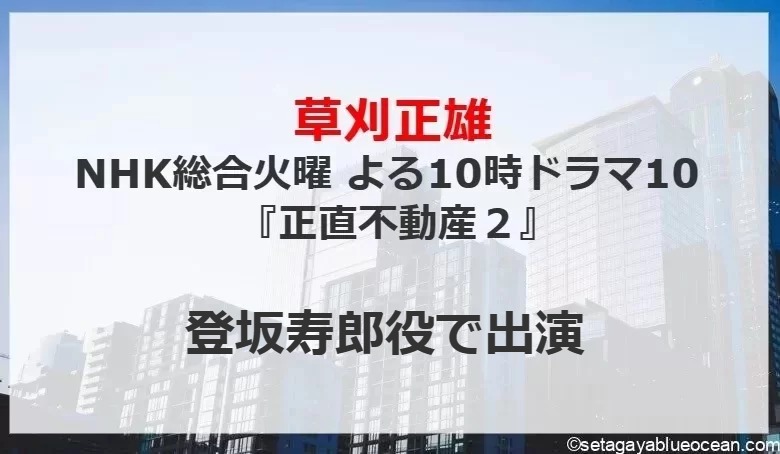 草刈正雄、登坂不動産社長。登坂寿郎を演じる。