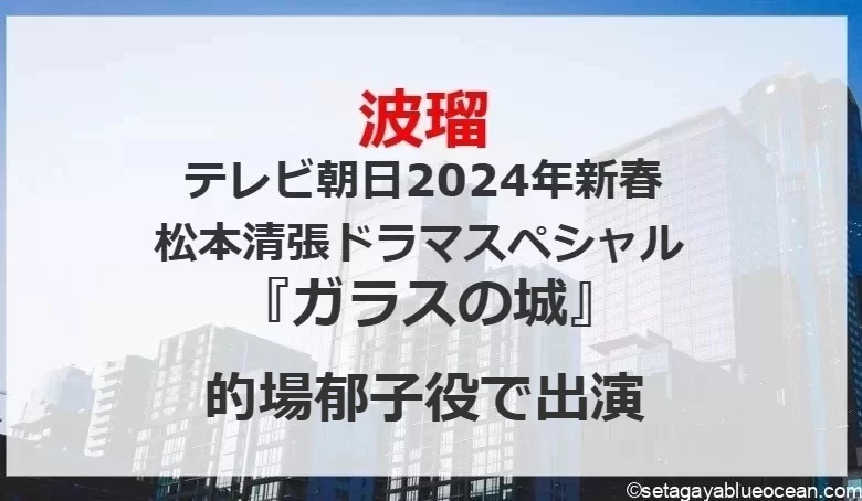 波瑠 テレビ朝日2024年新春 松本清張ドラマスペシャル『ガラスの城』的場郁子役で出演。