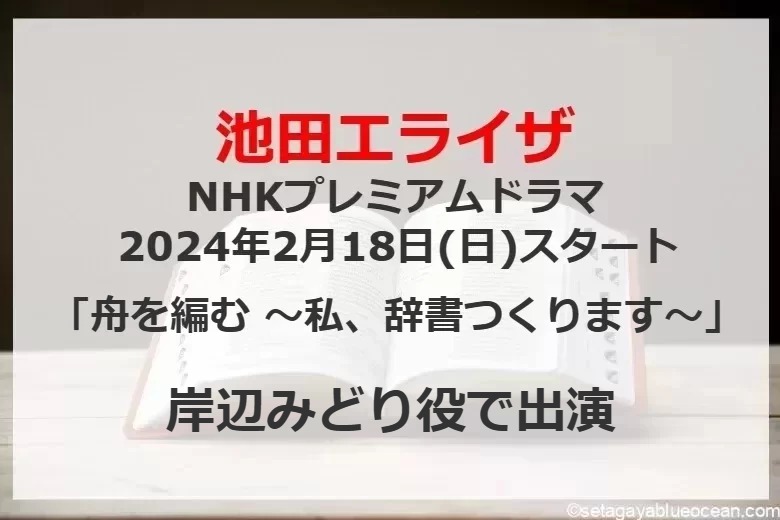 池田エライザ NHKプレミアムドラマ2024年2月18日(日)スタート「舟を編む 〜私、辞書つくります~」岸辺みどり役で出演。