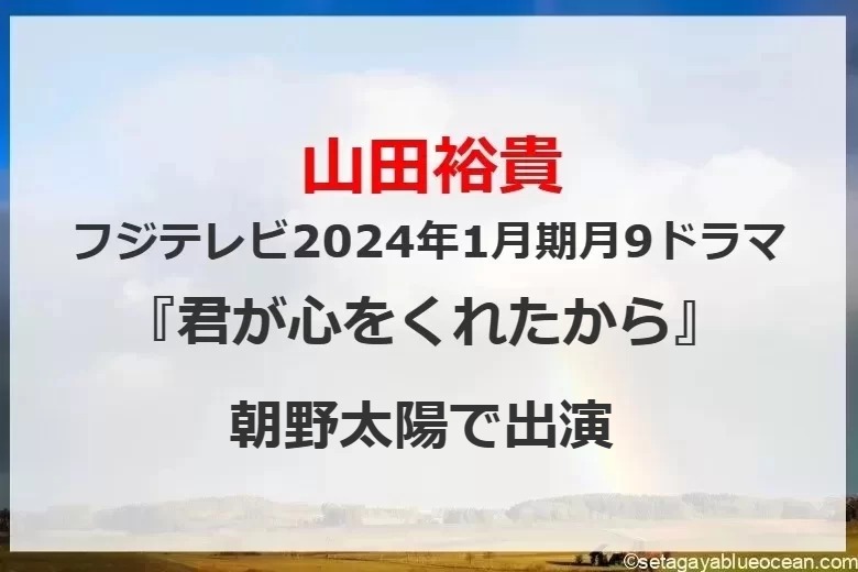 - 君が心をくれたから(2024年1月〈予定〉 – 、フジテレビ) – 朝野太陽 役