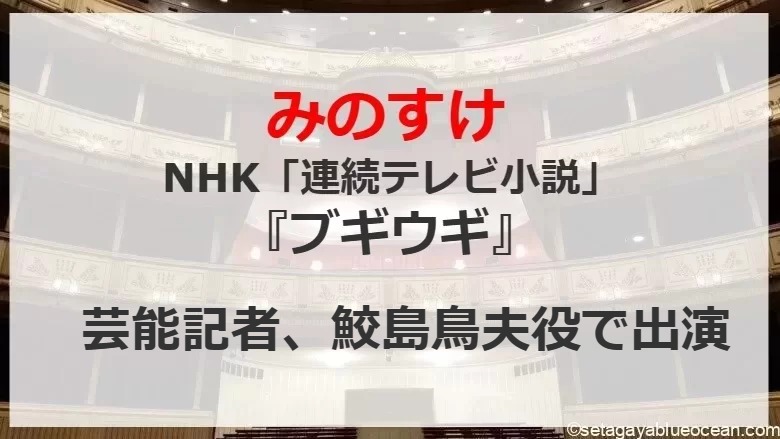 みのすけ、芸能記者。鮫島鳥夫を演じる。