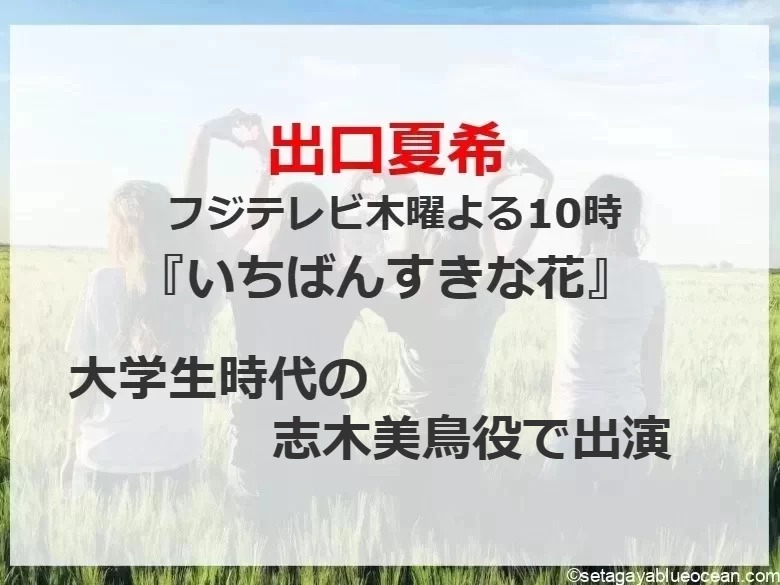 - いちばんすきな花 第9話(2023年12月7日〈予定〉、フジテレビ) – 志木美鳥 役(大学時代)