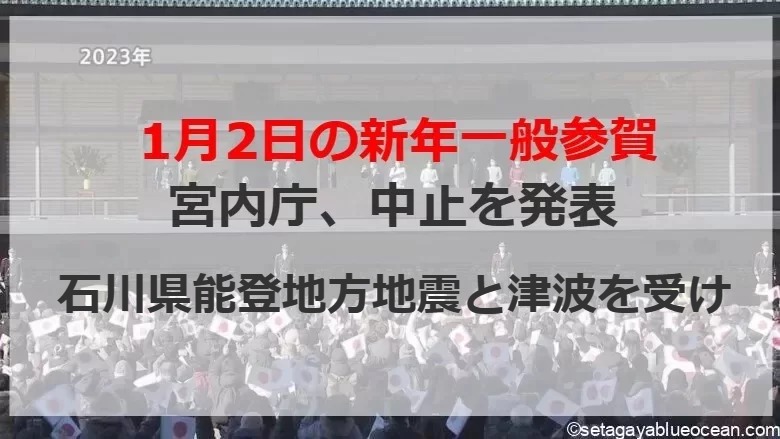 石川県能登地方などで最大震度7の地震や津波の発生を受けて、宮内庁は1月2日の皇居の一般参賀を取りやめると発表しました。