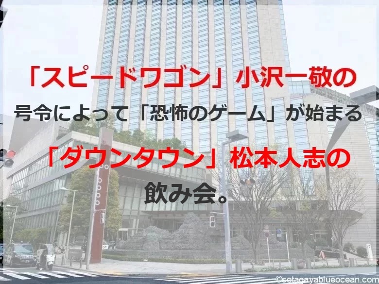 2015年9月、「ダウンタウン」松本人志(60)の飲み会に、「スピードワゴン」の小沢一敬(50)の誘いで参加したB子さん。携帯電話は事前に回収され、小沢の号令によって「恐怖のゲーム」が始まる。