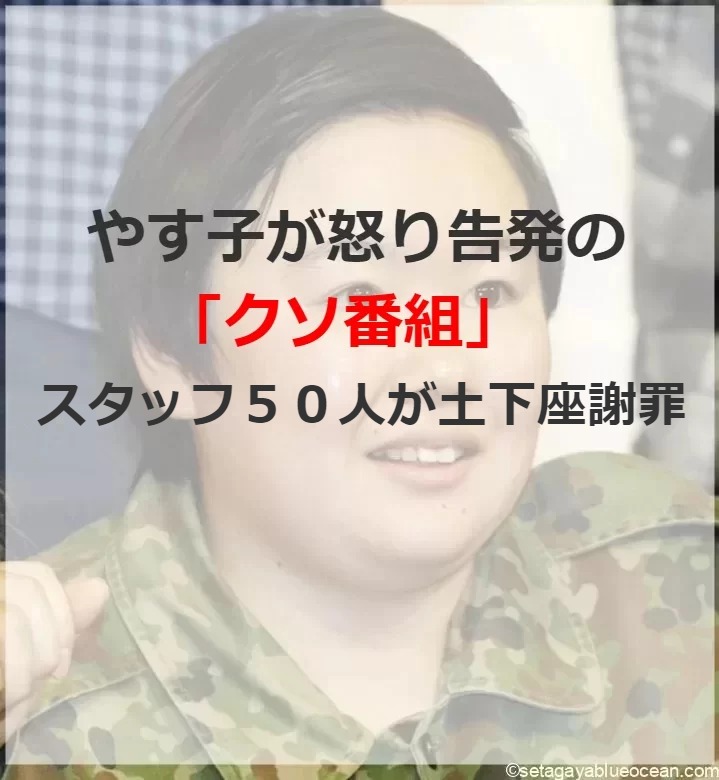10日放送のフジテレビ「芸能人が本気で考えた!ドッキリGP」では、番組スタッフ50人が、タレント・やす子に土下座する謝罪企画が行われた。