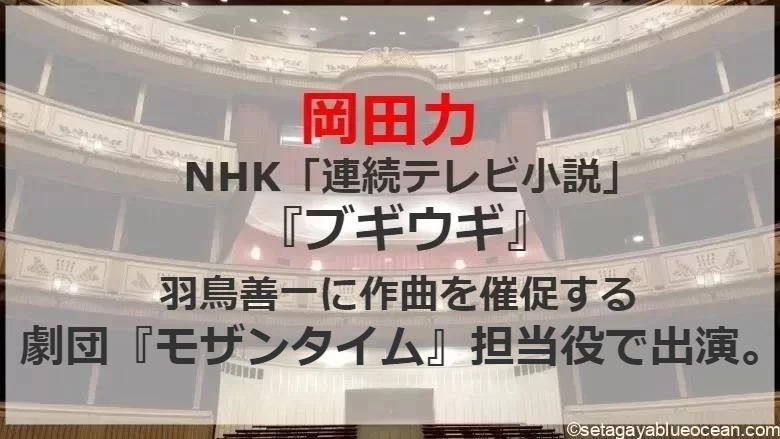 岡田力、羽鳥善一に作曲を催促する劇団『モザンタイム』担当役で出演。