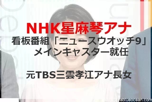 NHKの星麻琴アナウンサー(32)が、4月から同局の看板報道番組「ニュースウオッチ9」のメインキャスターに就任することが12日、分かった。近く正式に発表される。