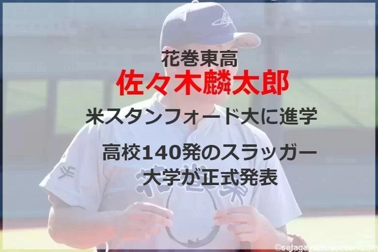 花巻東高(岩手)で通算140本塁打を放った佐々木麟太郎内野手が、米スタンフォード大学へ進学することが決まった。同大学が公式ホームページで発表した。