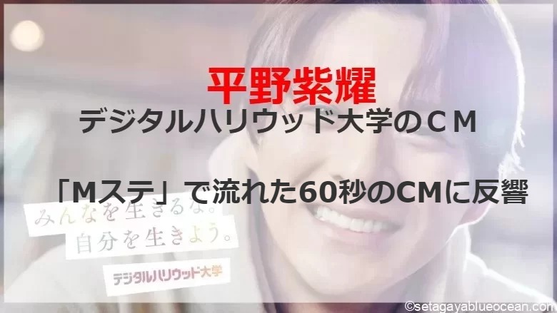 平野はデジタルハリウッド大学のCM「みんなを生きるな。自分を生きよう。2024」篇への出演が話題となっている。