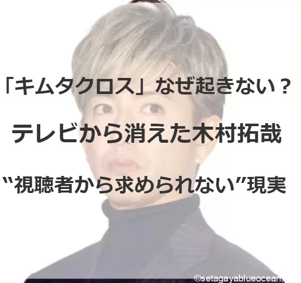 もちろん木村は引退したわけでも活動休止しているわけでもないのだが、テレビから突然姿を消した国民的スターに“キムタクロス”の一つでも叫ばれそうなのだが、その気配はほとんどない。