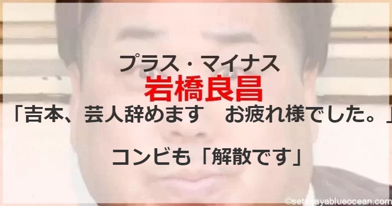 お笑いコンビ「プラス・マイナス」の岩橋良昌(45)が21日、自身のX(旧ツイッター)を更新。「吉本、芸人辞めます お疲れ様でした。」「プラスマイナスも解散です」などと投稿した。