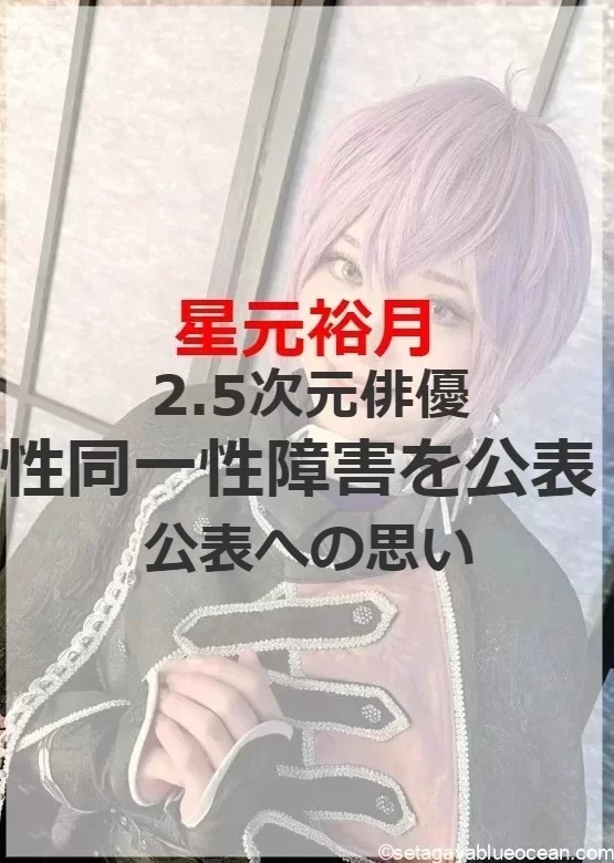 アニメやゲームなどの作品を原作とした“2.5次元”の舞台などで活躍する、俳優の星元裕月さん(26)。去年9月、性同一性障害(GID/MTF)であることを公表しました。どんな思いで公表に至ったのか、今感じていることとはー。星元さんにお話を伺いました。