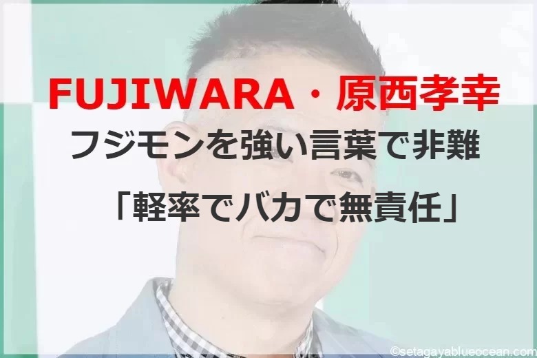 それでも藤本の「また一緒にFUJIWARAとして活動していきたい」という言葉を受け、「世間の皆様が許していただけるのであれば、もう一度相方とお笑いがしたい。2人でFUJIWARAのお笑いを皆様に届けられるように頑張っていこうという気持ちはお互い持っております」と自身の思いを語った。