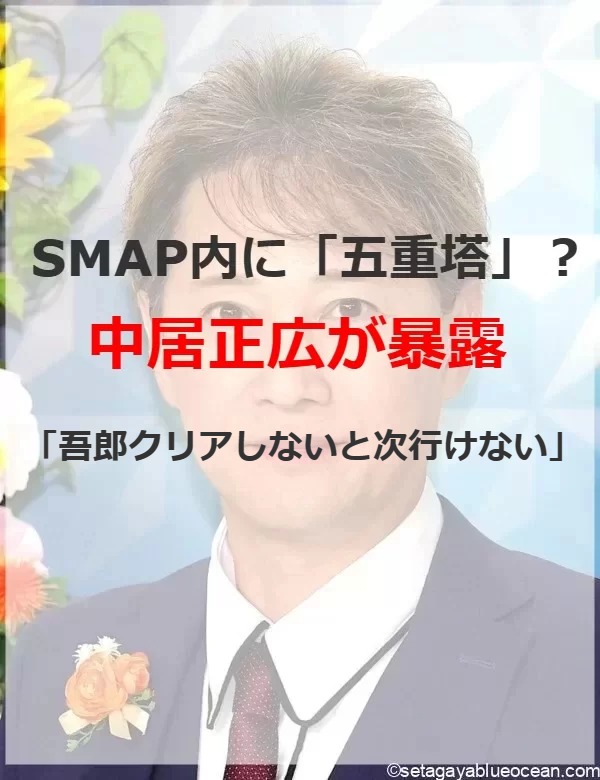 これに対し、山崎の事務所の先輩でお笑いコンビ「おぎやはぎ」小木博明は「僕は慎吾ちゃんは関係持ってないんですよ」と告白。元SMAPで関係があるのは「吾郎ちゃん」と稲垣吾郎の名前を出した。すると中居は「吾郎ちゃんまでしか行けなかったんだ」とポツリ。「吾郎クリアしないと次行けないから」と表現し、稲垣がメンバーの中で最も親しみやすい存在のように表現し、山崎に「五重塔みたいなことなの?」と突っ込んだ。