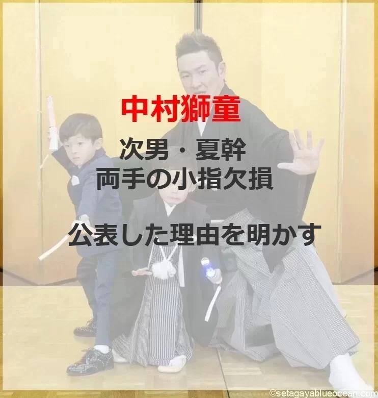獅童は昨年11月、「十二月大歌舞伎」の取材会で、夏幹について「これまで明かしてこなかったこと」として時間を取った獅童は次男が、両手の薬指と小指がくっついた状態で生まれたことを公表。病名は明かさなかったが、これまで骨を切り離し、形を整える2度の手術を受けたと語った。現在は「両指の小指がない状態」と説明した。