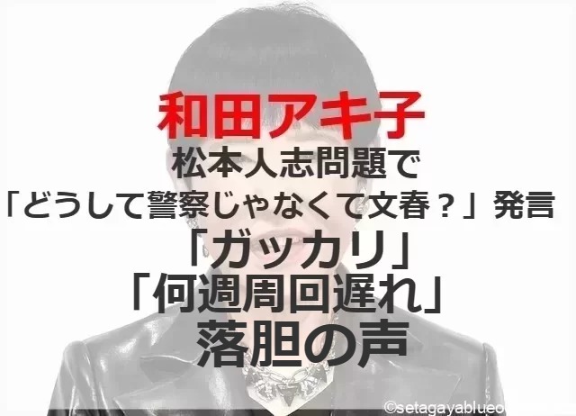 和田が、被害女性に対して、「どうして警察じゃなくて文春?」と疑問を投げかけ、「小さいころからおまわりさんのところに行くっていう」と持論を語ったことに、SNSでは落胆する声が多く上がっている。
