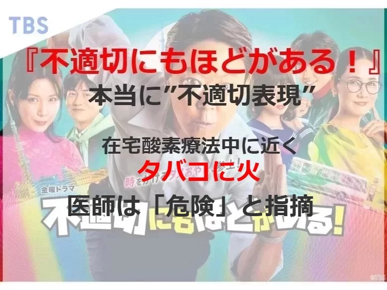 きちんと“お詫び”が書かれているのだ。同日の放送の中では、古田新太演じる犬島ゆずるが、主人公・小川の義理の父であることが判明。犬島は鼻にチューブ(鼻カニューレ)を入れるタイプの在宅酸素療法を行っており、酸素ボンベと思われるカートを常に引いていた。その真横で、小川がタバコに火をつけるシーンが描かれていたのだ。TBS関係者が明かす。