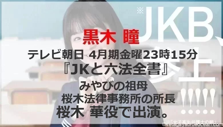 - JKと六法全書(2024年4月〈予定〉 – 、テレビ朝日) – 桜木華 役