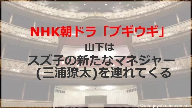 これまでになく難しい歌に練習を繰り返すスズ子のもとに、山下が改まって訪ねてくる。愛助、トミが亡くなり「心の糸が切れてしまった。お役御免や。これからの人と仕事をするべき」とマネジャーを辞めると語る。そして新たなマネジャーとしてタケシ(三浦獠太)を連れてくる。