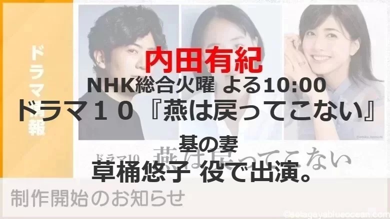 - 燕は戻ってこない(2024年4月30日〈予定〉 – 、NHK総合・NHK BSプレミアム4K) – 草桶悠子 役