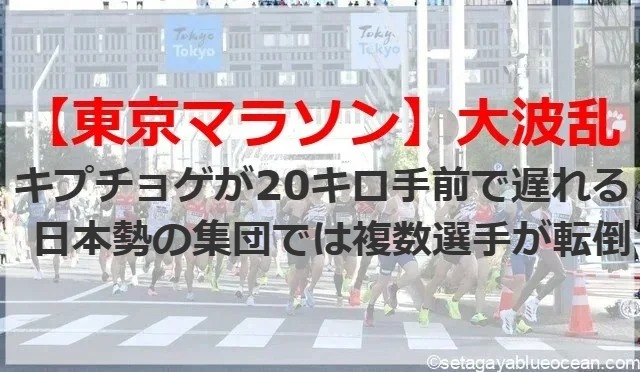 前世界記録保持者のエリウド・キプチョゲ(ケニア)らは10キロ28分29秒というハイペースで通過。キプチョゲは20キロ手前で先頭集団から遅れる大波乱の展開となった。
