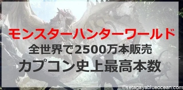カプコンは12日、ゲーム『モンスターハンター:ワールド』が全世界で2500万本販売したことを発表した。同社単一タイトルとして史上最高販売本数を更新した。