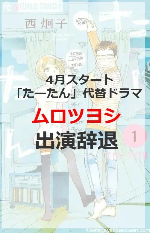 日本テレビが今年4月に放送予定だったドラマ「たーたん」の代替番組となる新ドラマから、俳優のムロツヨシが出演を辞退していたことが「週刊文春」の取材で分かった。