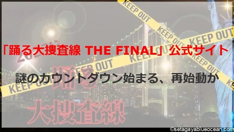 1997年の連続ドラマから始まり、その後、スペシャル、スピンオフ、映画と、一大コンテンツとして多くのファンを魅了した、俳優・織田裕二主演の「踊る大捜査線」シリーズ。その最後の映画作品となった「踊る大捜査線 THE FINAL 新たなる希望」の公式サイトで、3月17日、謎のカウントダウンが始まった。