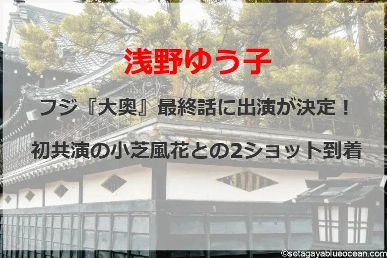 小芝風花が主演を務め、亀梨和也が共演するドラマ『大奥』(フジテレビ系/毎週木曜22時)の最終話(3月28日放送)に、本作のナレーションを担当している浅野ゆう子が出演することが決定した。物語の終盤の重要な役どころとなる浅光院(せんこういん)を演じる。