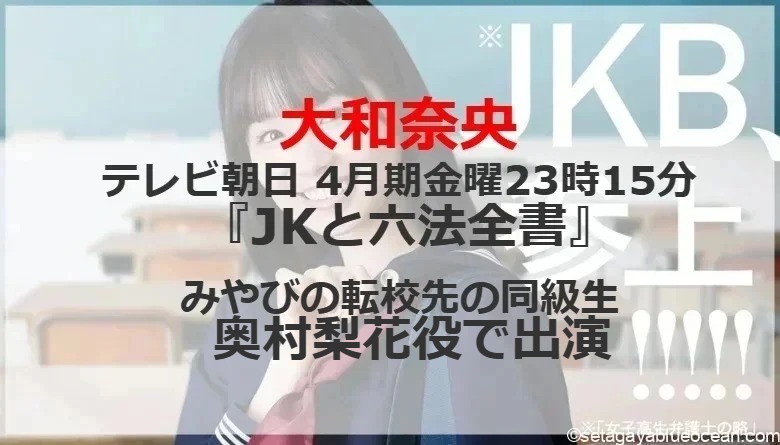 - JKと六法全書(2024年4月19日〈予定〉 – 、テレビ朝日) – 奥村梨花 役