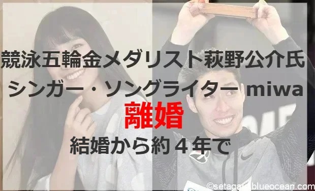 16年リオデジャネイロ五輪競泳男子400メートル個人メドレー金メダリストの萩野公介氏(29)と、19年8月に結婚したシンガー・ソングライターmiwa(33)夫妻が離婚したことが18日、分かった。