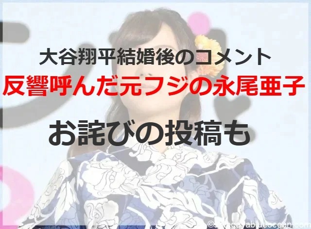 「女子アナってそんなに悪なのか泣」永尾アナが嘆き 大谷結婚の反響に擁護の声「嫉妬されてるだけ」