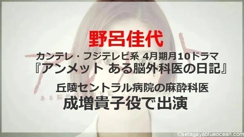 野呂佳代、丘陵セントラル病院の麻酔科医・成増貴子役を演じる。