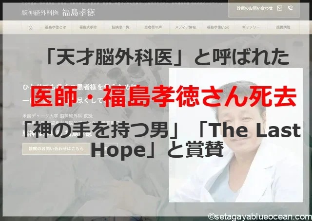 “ゴッドハンド”“天才脳外科医”と呼ばれた医師の福島孝徳さんが死去した。81歳。公式サイトで発表された。