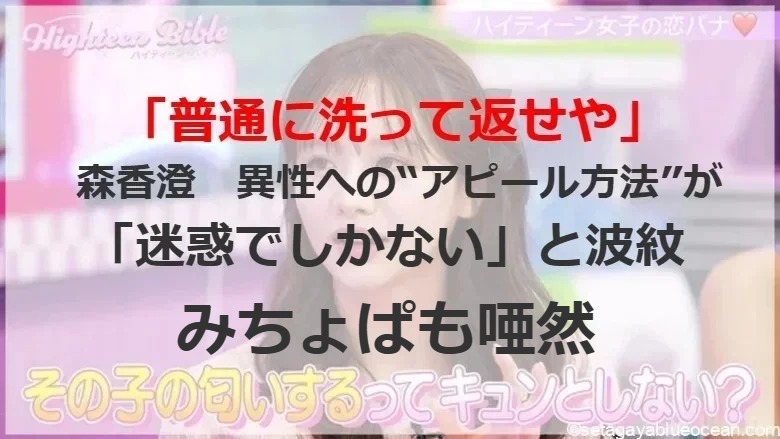 タレントで女優の森香澄(28)が3月25日に放送されたZ世代・ハイティーン向け情報バラエティ番組『ハイティーン・バイブル』(ABEMA)に出演し、借りた洋服を返却する際にある“ひと手間”を加えると発言し波紋を呼んでいる。