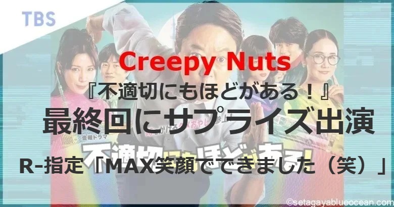 3月29日に最終回を迎えたTBS金曜ドラマ『不適切にもほどがある!』にCreepy Nutsがサプライズ出演を果たした。