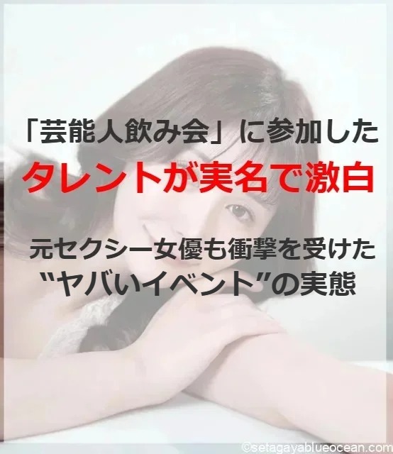 もちろん、タレント全員が今回聞いたようなエグい集まり方をしているわけじゃないし、そもそも会合に興味がない人だっている。私は芸能人飲み会の存在自体を否定したいのではない、という点は強く主張しておこう。