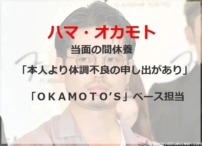 ダウンタウン・浜田雅功とタレント・小川菜摘夫妻の長男で、4人組バンド「OKAMOTO’S」ベースのハマ・オカモトが2日、公式サイトで当面の間、休養することを発表した。