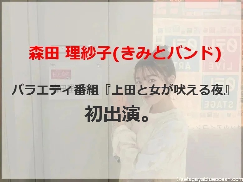 バラエティ番組『上田と女が吠える夜』(4月3日 水曜 21:00~)に「きみとバンド」森田 理紗子が出演する。