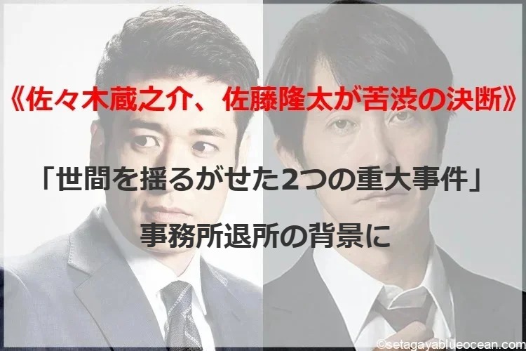 2人の大物俳優にとって、今回の選択は苦渋の決断だったようだ━━。4月1日、芸能事務所「ケイファクトリー」が俳優の佐々木蔵之介(56)と佐藤隆太(44)が専属契約満了で退所することを発表した。